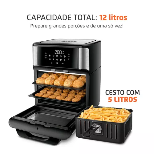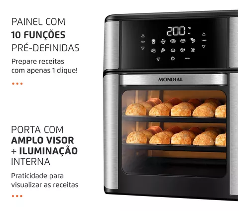 OficialFritadeira Elétrica Mondial AFO-12L-BI Forno Oven 12L Preto/Inox Bivolt